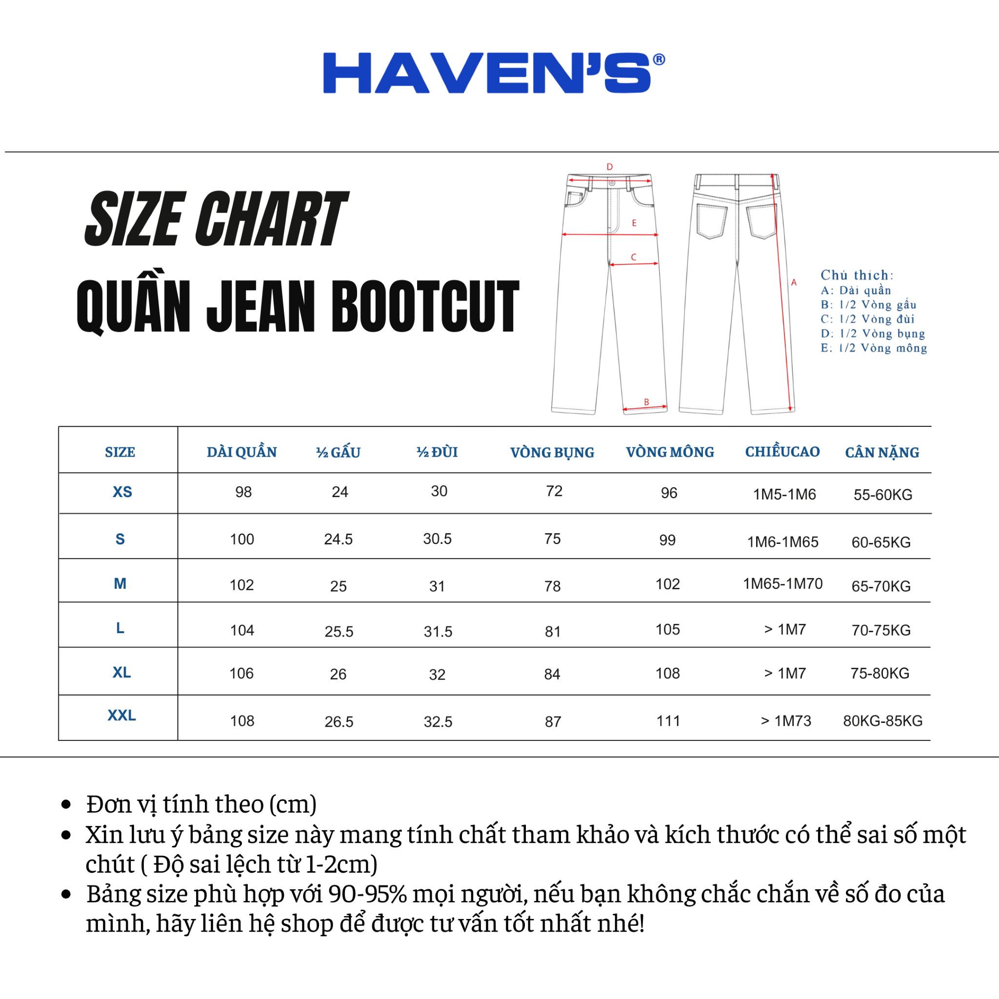 Chất liệu denim cao cấp: Được chọn lọc kỹ lưỡng từ các nhà cung cấp uy tín trong và ngoài nước, vải denim của HAVEN'S có độ bền cao, co giãn tốt, đem lại cảm giác thoải mái khi mặc.